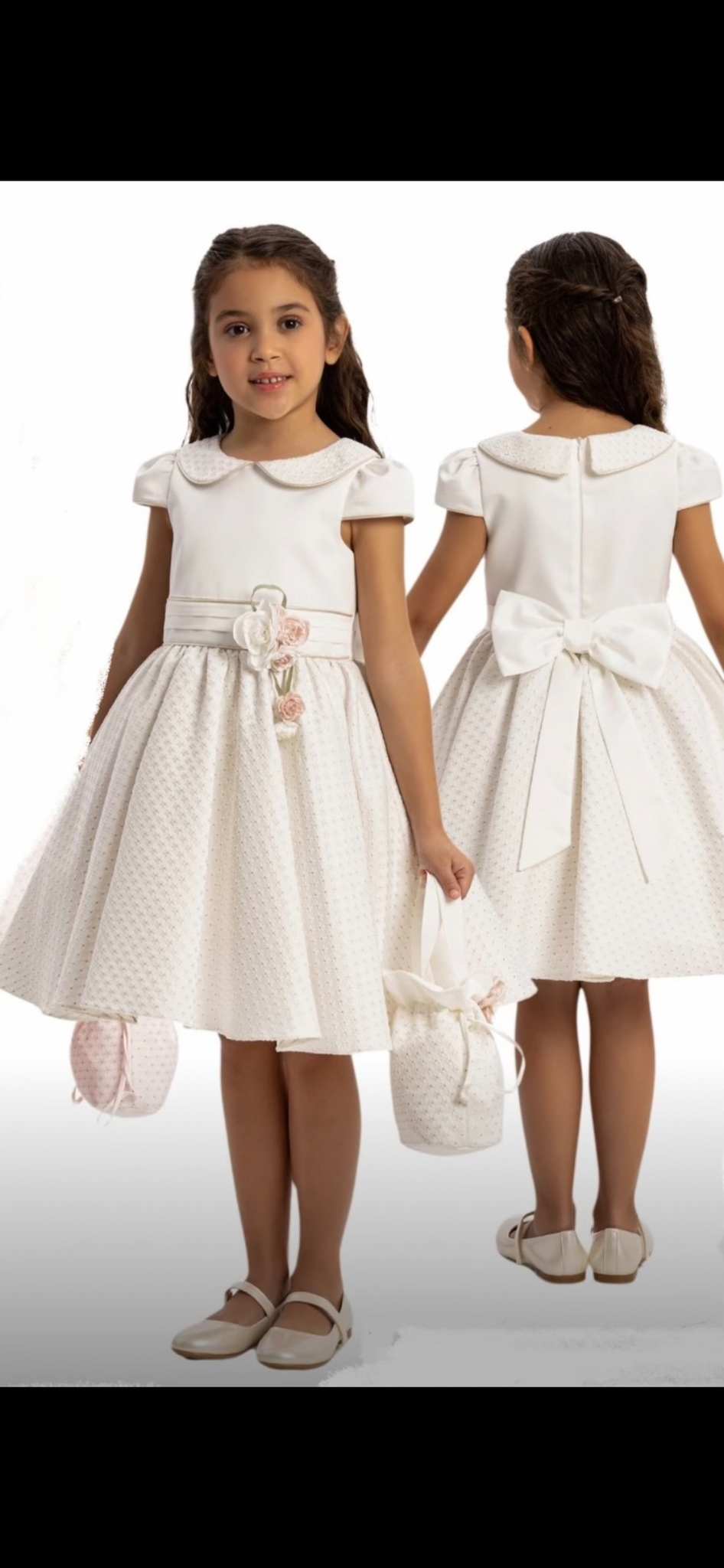 Tämä upea valkoinen mekko on täydellinen valinta erityisiin tilaisuuksiin, kuten syntymäpöiville, häihin, ristiäisiin tai muihin tärkeisiin tilaisuuksiin. Settiin kuuluu mekko sekä pieni kangaspussukka.
