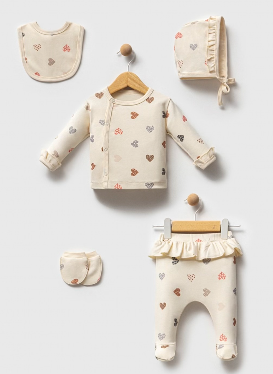 Vauvan sydänkuvioinen 5-osainen setti, puuvilla