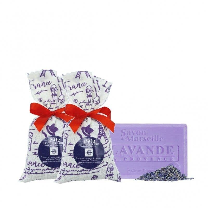 Kaunis setti, joka sisältää kaksi laventeli- ja lavandiinipussia (18 g/kpl) sekä 100 g Provence-laventelisaippuan. Tässä kokonaisuudessa yhdistyvät Marseille-saippuan perinteet ja laventelin ajaton tuoksu, tuoden esiin ranskalaisen käsityötaidon ja kulttuurin parhaat puolet.