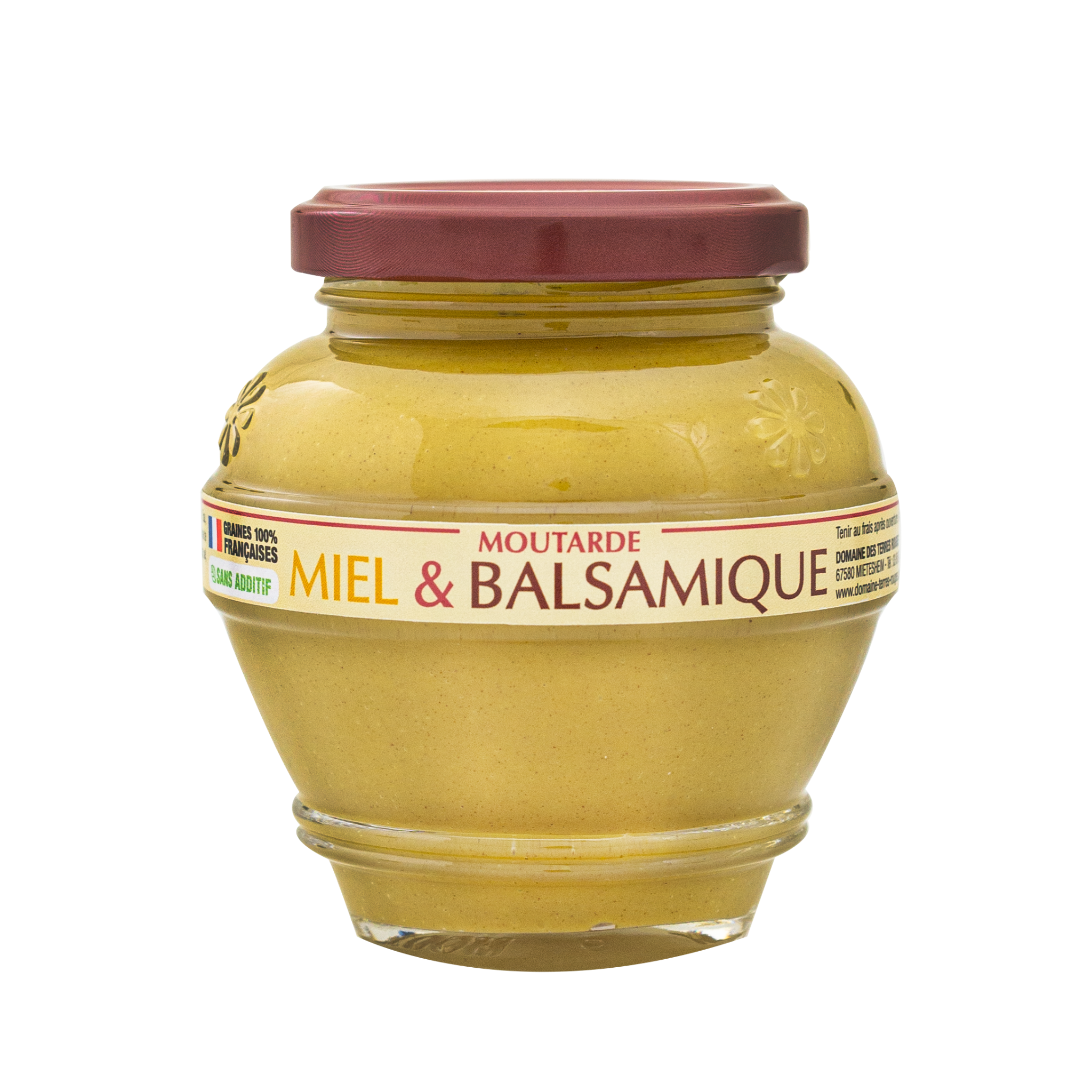 La Moutarde au Miel Balsamique est une moutarde naturelle, douce et parfumée Sa recette est saine et transparente elle ne contient aucun sulfite ni autre additif.