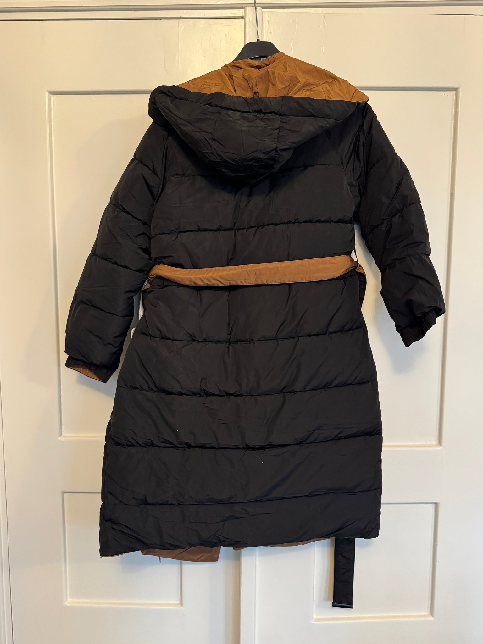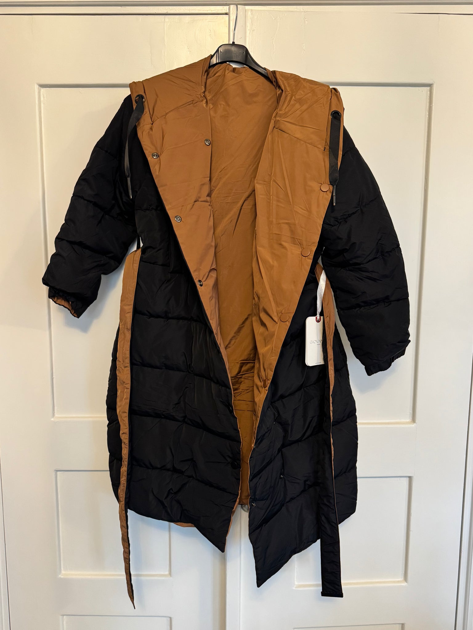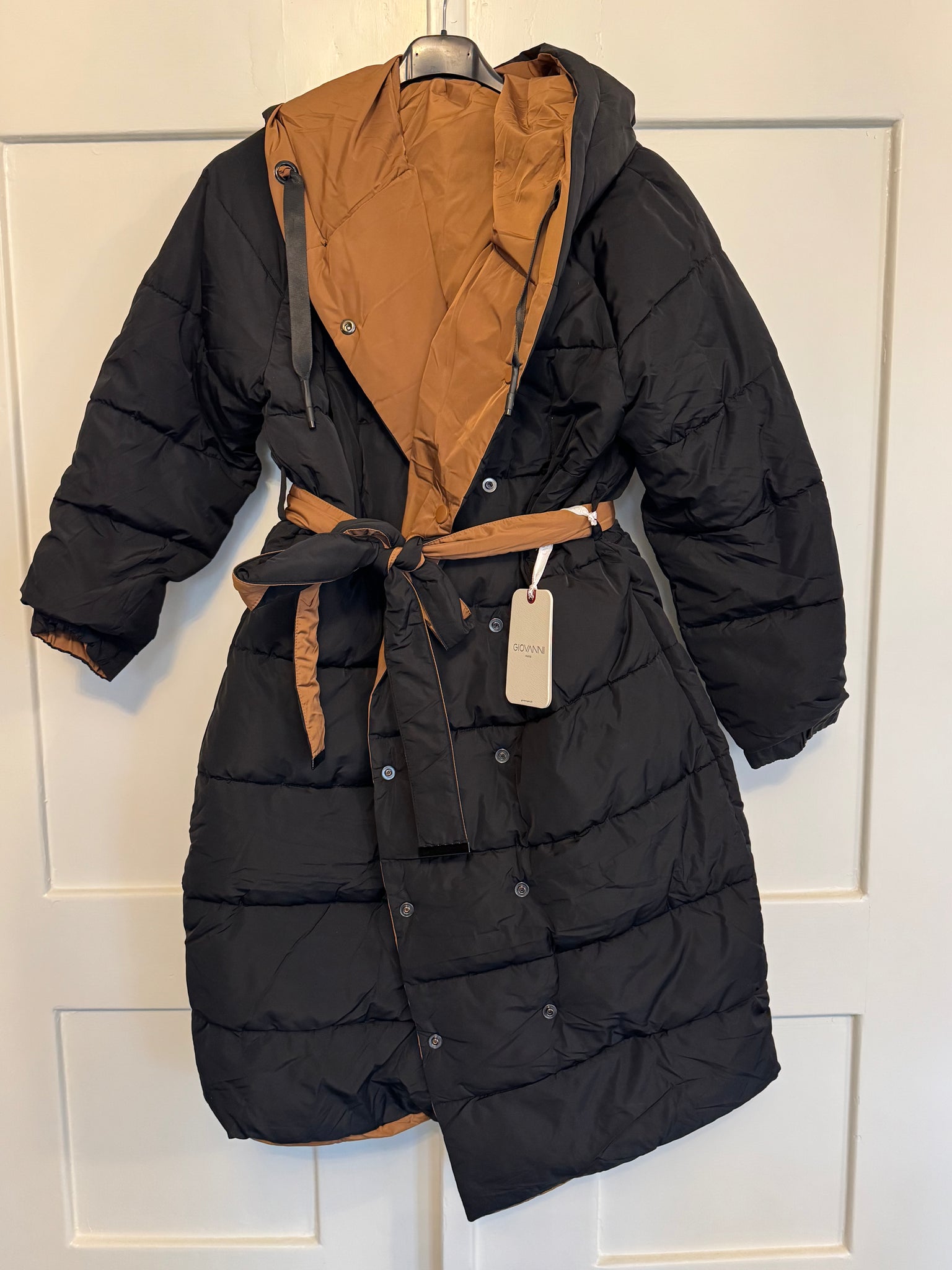 Pysy lämpimänä tinkimättä tyylistäsi. Tämä ylellinen musta untuvatakki on suunniteltu pitämään sinut mukavan lämpimänä ja samalla kohottamaan arkipukeutumisesi uudelle tasolle. Pehmeä ja kauniisti muotoiltu siluetti yhdistettynä säädettävään vyötärövyöhön korostaa vartaloa ja säilyttää lämmön — täydellinen niin kaupunkikävelyille kuin talviseikkailuihin.