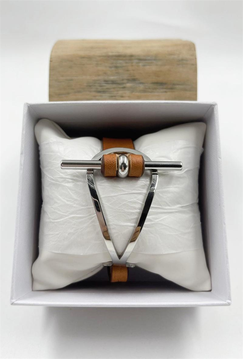Tämä ranneke sopii täydellisesti sekä arkeen että juhlaan. Yhdistä rennon t-paidan kanssa casual-lookiin tai puvun kanssa muodollisempaan asuun. Pyöreä hopeinen sulkija luo kauniin kontrastin ruskealle nahalle.